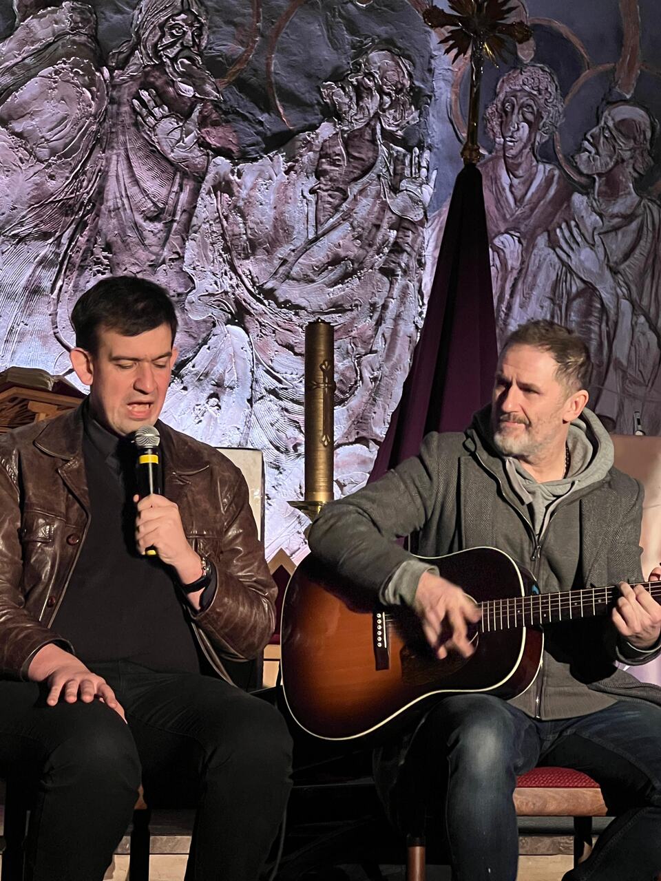 „Przyzwyczailiśmy się do niektórych obrazów z Drogi Krzyżowej. Czasem wydają się takie odległe. A tu, w trakcie misterium Bezdomny Jezus, mogliśmy zobaczyć, że Droga Krzyżowa jest blisko, że po niej wielu z nas po prostu codziennie próbuje iść. Dobrze, że mogliśmy zobaczyć, że nie jesteśmy na tej drodze sami, że Chrystus jest tak blisko - w każdym z tych jakże przejmujących doświadczeń hospicjum, ale także wśród naszych codziennych pytań o sens cierpienia. Dziękuję za wszystko, co się tutaj wydarzyło. To misterium to ogromny dar” - podkreślił ks. Hubert Walczyk, proboszcz parafii Matki Bożej Królowej Polski w Otwocku.