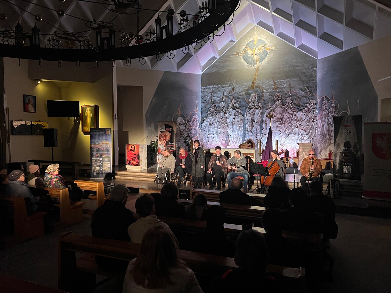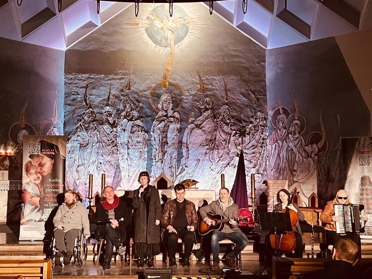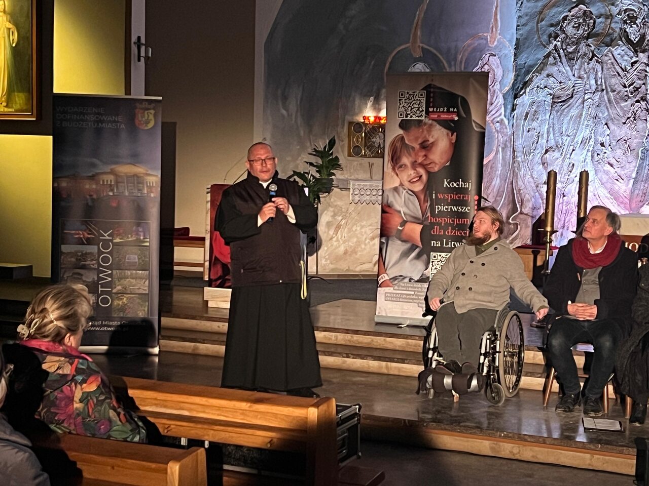 W piątek 27 lutego w Parafii Matki Bożej Królowej Polski w Otwocku teatr wystawił wzruszające do głębi Misterium „Bezdomny Jezus”. Podczas tej wstrząsającej, ale i pięknej Drogi Krzyżowej usłyszeliśmy 14 prawdziwych historii, spisanych między łóżeczkami jedynego na Litwie hospicjum dla dzieci i dorosłych. Każda z tych historii miała swoją ilustrację wyświetlaną na wielkim żaglu tratwy, stanowiącej główną scenografię, a między opowieściami niewidoma piosenkarka Natalia Lewandowska wyśpiewała 14 fragmentów Lamentacji Jeremiasza.